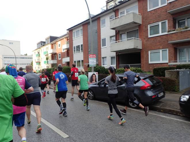 Wandsbeker Allee 19.35 Uhr / Km 20,5 Nun startete ein lang gezogener Zielsprint. Ja, ich erhöhte das Tempo noch einmal spürbar. |