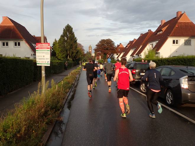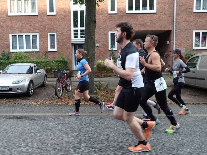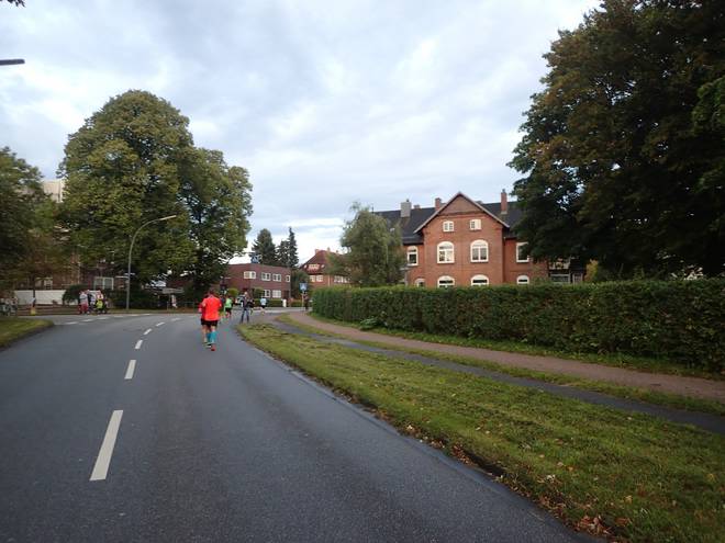 August-Krogmann-Straße 18.42 Uhr / Km 8,8 Dann wurde mir die Spielerei mit den Zahlen zu blöde. Bevor ich die Erkältung spürte, war das hier doch als Testlauf gedacht. Und weder beim Marathon am Tag zuvor noch jetzt spürte ich was von der Erkältung. Also beließ ich es doch bei einem Testlauf und lief einfach. |
