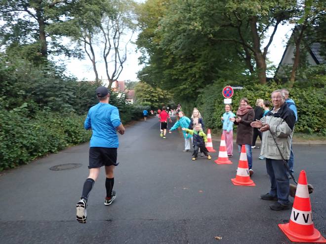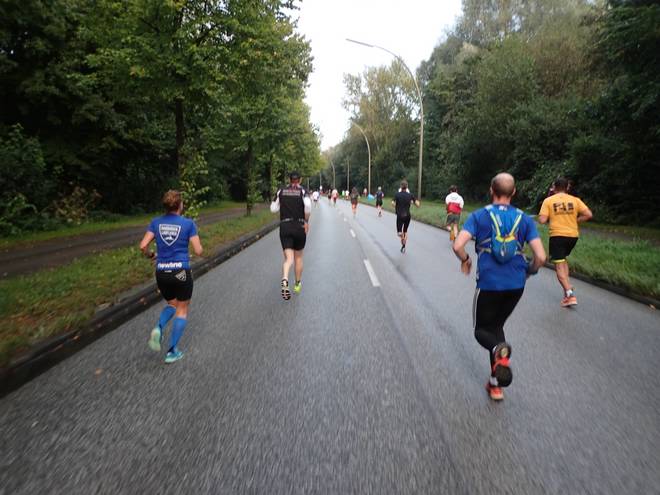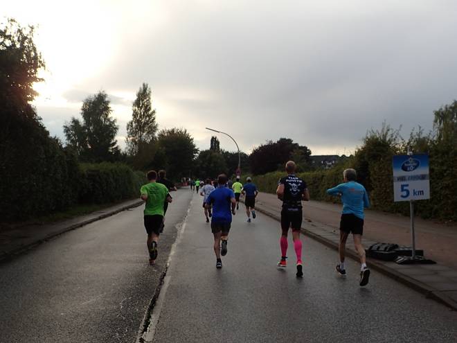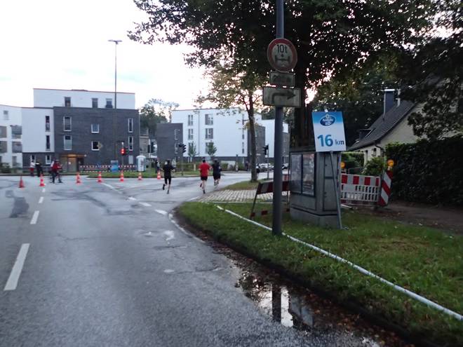 Alter Zollweg 19.10 Uhr / Km 15,0 1:10:15 Stunden bei Kilometer 15. Nur 23:05 Minuten für die dritten fünf Kilometer. Das lief deutlich in Richtung der 1:39 Stunden. |