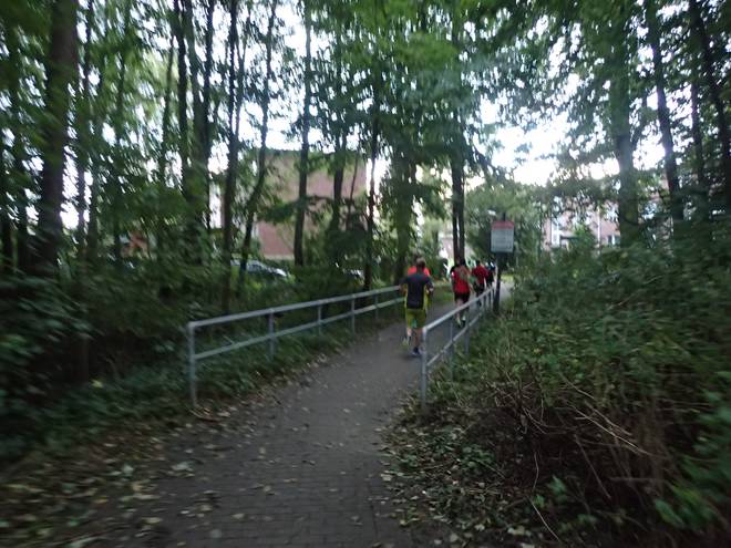 Plattenfoort 18.56 Uhr / Km 11,8 Auch hier durch den Berner Gutspark ging ich es etwas ruhiger an. Auf dem schmalen Weg wäre ich an den Läufern da vorne eh nur schwer vorbei gekommen. |