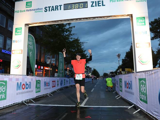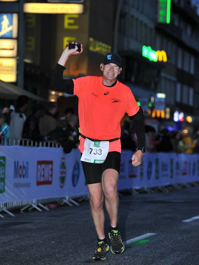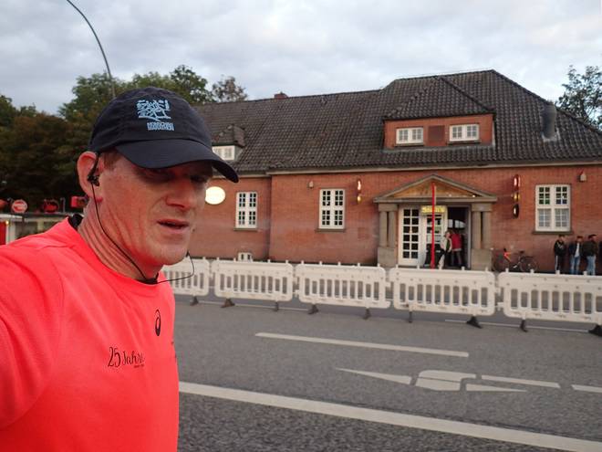 Wandsbeker Marktstraße 19.37 Uhr / Km 21,075 Am Tag zuvor noch der tolle 10-Teiche-Marathon im Harz. Ganz locker über 700 Höhen-Meter und in guter Zeit. Und nun der Halbmarathon in unerwartet schneller Zeit. Foto: Lars Schinkel |