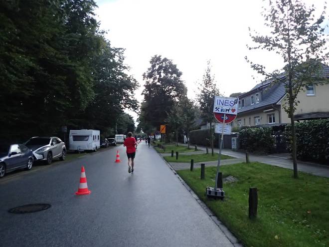 Stormarner Straße 18.05 Uhr / Km 1,0 Am Ende legte ich die Marke dann auf 1:44:44 Stunden. Das war eine Bekannte morgens in Porto beim Halbmarathon dort gelaufen. |