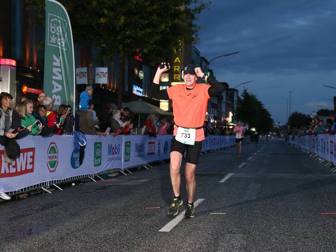 Wandsbeker Marktstraße 19.37 Uhr / Km 21,07 Das war ein Lauf, den man so richtig abfeiern durfte. Foto: Lars Schinkel |