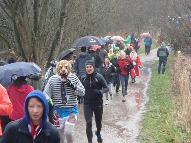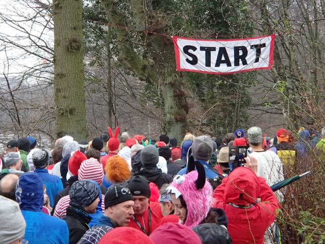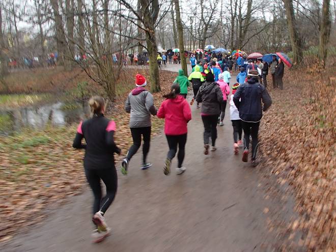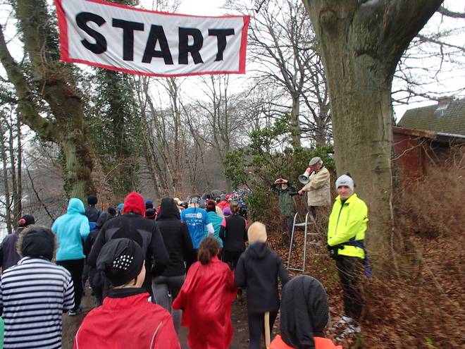 Volksdorfer Teichwiesen 11.53 Uhr Trotz des Sauwetters waren kaum weniger Läufer am Start als in den Vorjahren. |