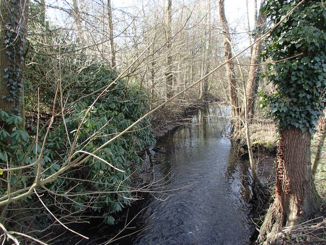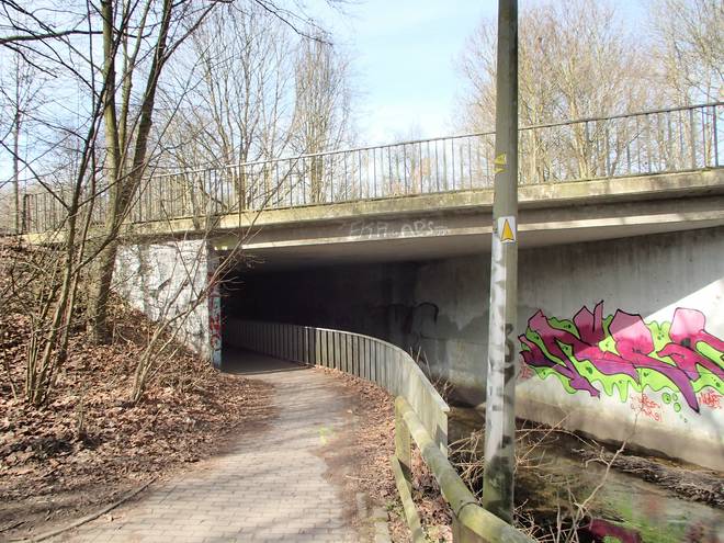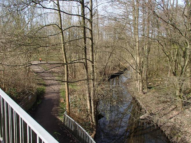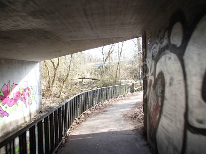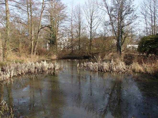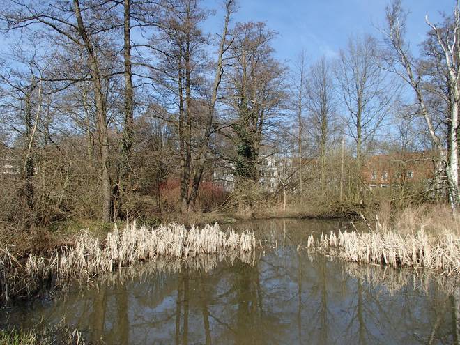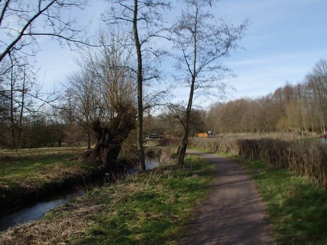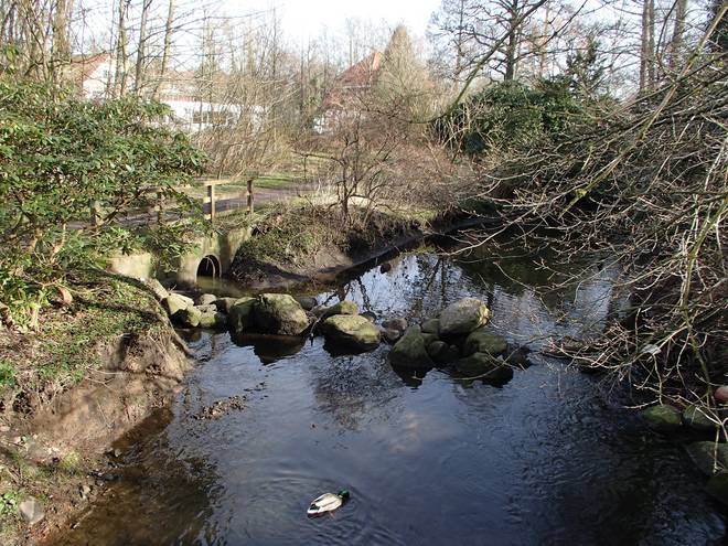 Eichtalpark Wandse 9.33 Uhr Der erste Blick auf den namensgebenden Fluß, dem ich noch lange genug folgen würde. |