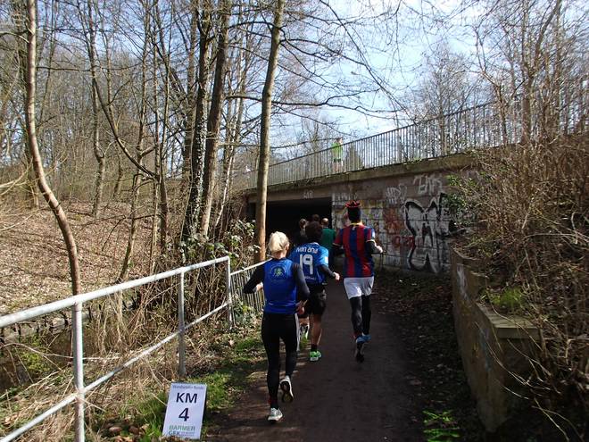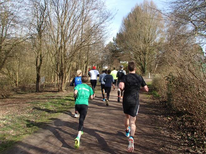 Eichtalpark Hamburg-Wandsbek 9.32 Uhr Für März hatten wir ein prima Laufwetter. Es war trocken, sonnig, nicht windig und immerhin 1°C. |