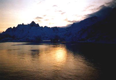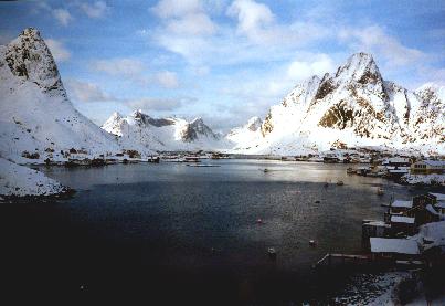 lich weißem Schnee eingeramt von hohen Bergen und dem weiten Ozean.