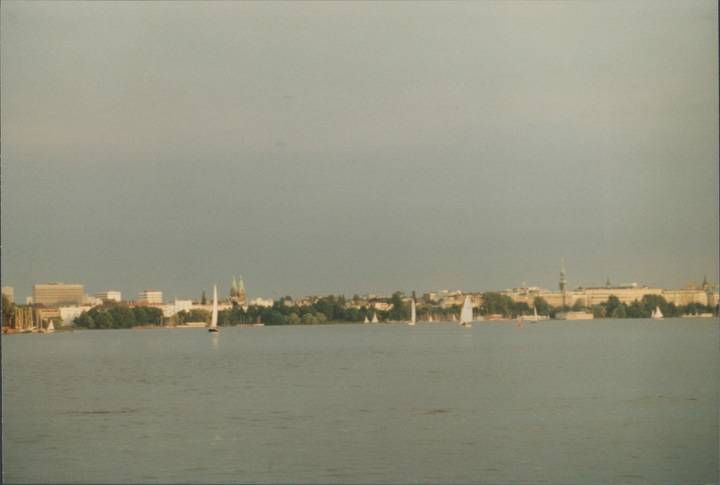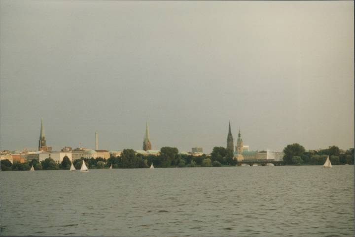 Außenalster St. Jacobi Kirche Hauptkirche St. Petri Mahnmal St. Nikolai Rathaus Kennedybrücke |