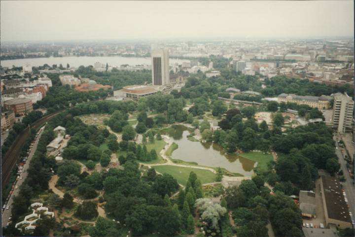 Planten un Blomen SAS Radison Hotel Außenalster Blick vom Heinrich-Hertz-Turm |