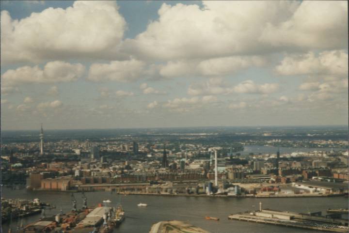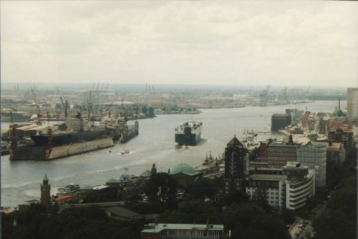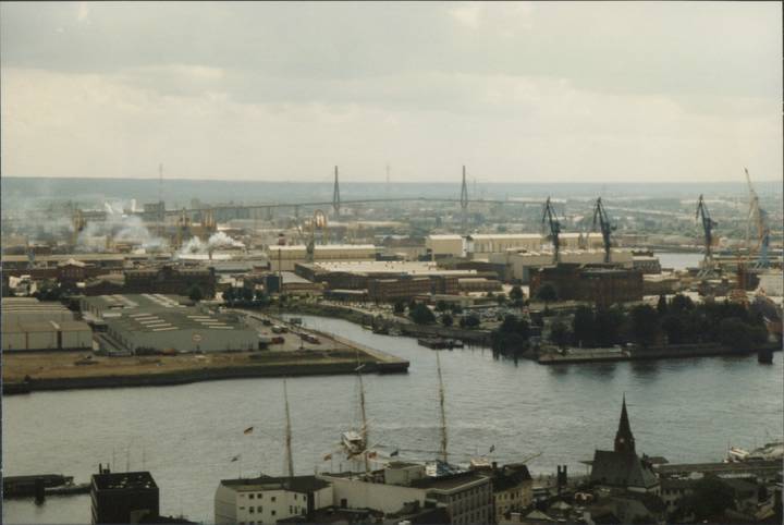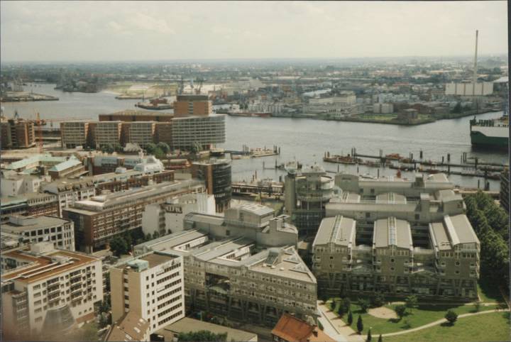 Hafen Hamburg Norderelbe von der Hauptkirche St. Michaelis |