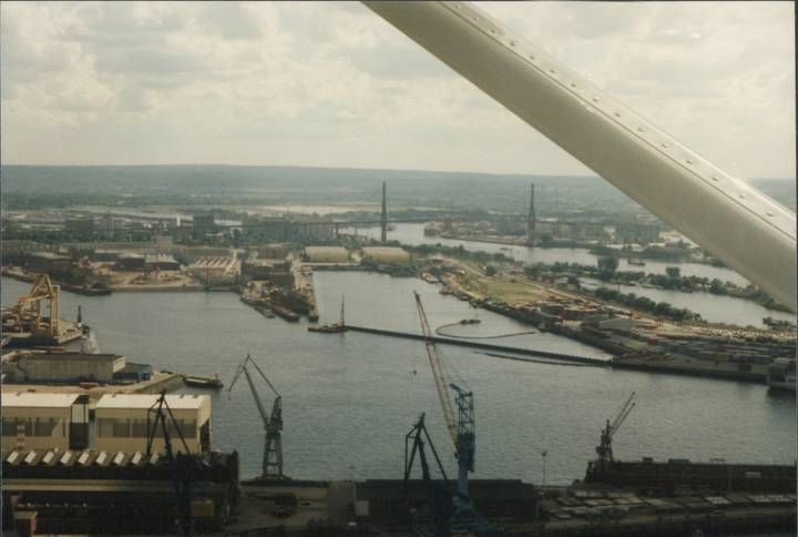 Hafen Hamburg Köhlbrandbrücke vom Wasserflugzeug aus |