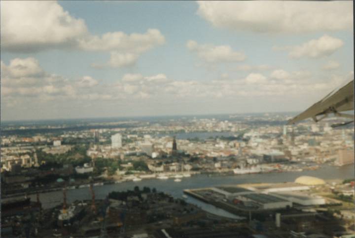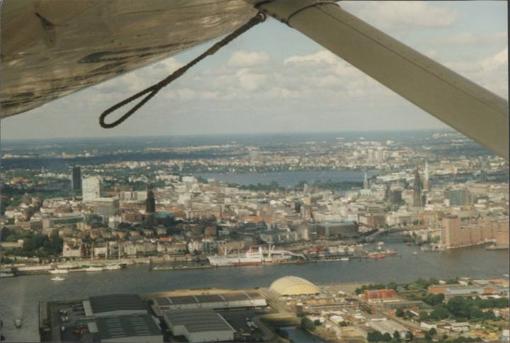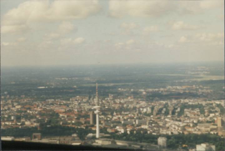 Heinrich-Hertz-Turm Eimsbüttel vom Wasserflugzeug aus |