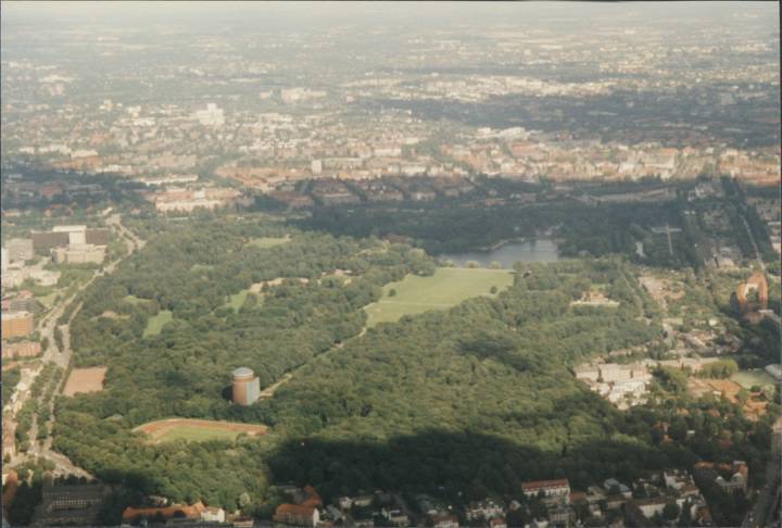 Stadtpark Planetarium Barmbek vom Wasserflugzeug aus |