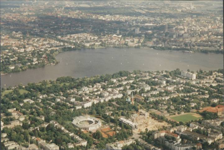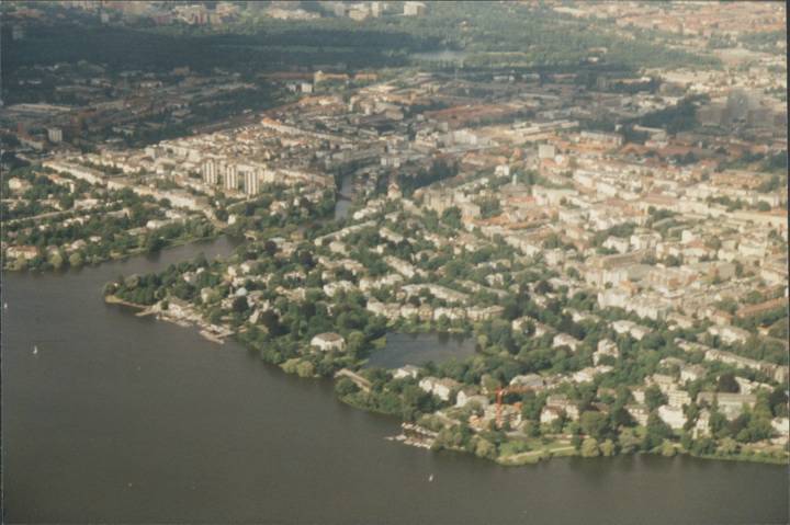Außenalster Langer Zug Mundsburg vom Wasserflugzeug aus |