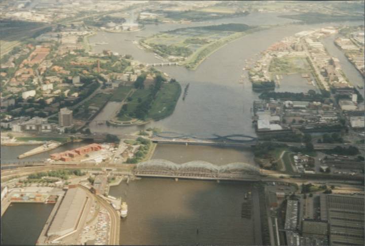 Elbbrücken Norderelbe Entenwerder Kaltehofe vom Wasserflugzeug aus |